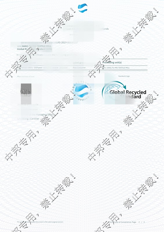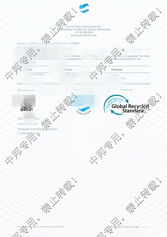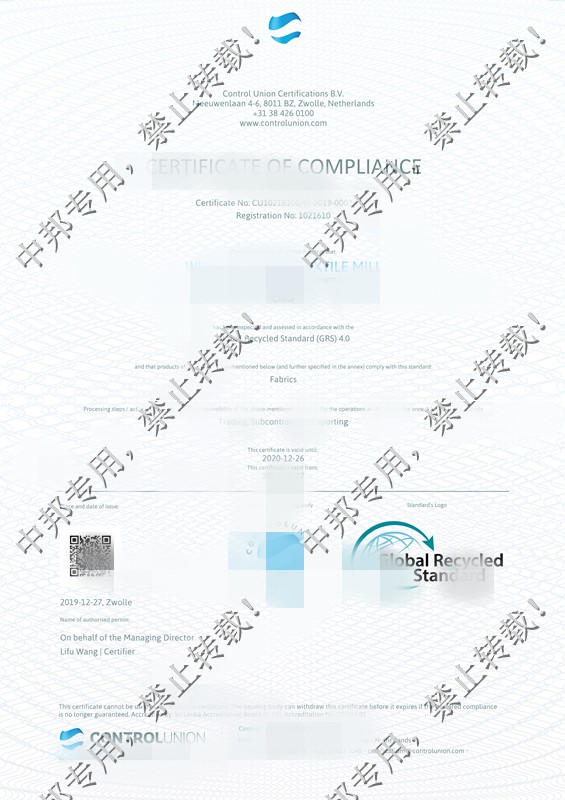 恭贺吴江XX毛纺厂2020年1月顺利通过GRS认证!