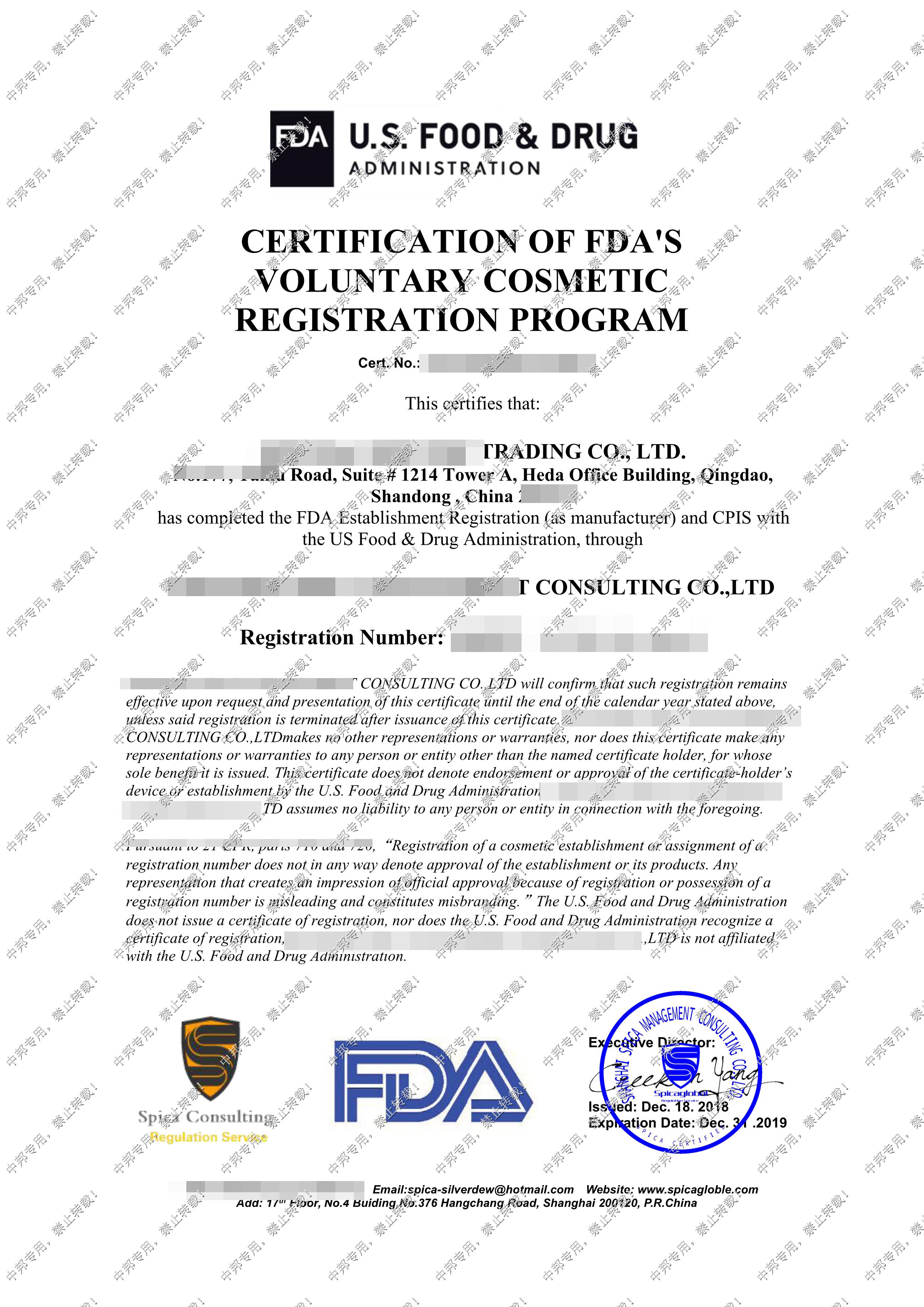 恭贺青岛XX贸易有限公司2019年4月顺利通过FDA认证!
