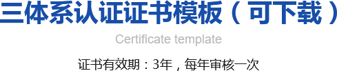 三体系认证又叫三标体系认证或三标一体,包含ISO9001质量管理体系、ISO14001环境管理体系、ISO45001职业健康管理体系。三体系是以国家相关产品质量法、标准法和计量法等法规和产品标准为依据,通过组织构架的建立、岗位的设定、岗位职责的划分、岗位制度和流程的制定从人员、工作场所、设备设施、经营品项和环境影响等方面进行有效运行和管控,以达到人员安全、质量保证、环境保护、顾客满意和企业受益的一种宏观的管理理念。