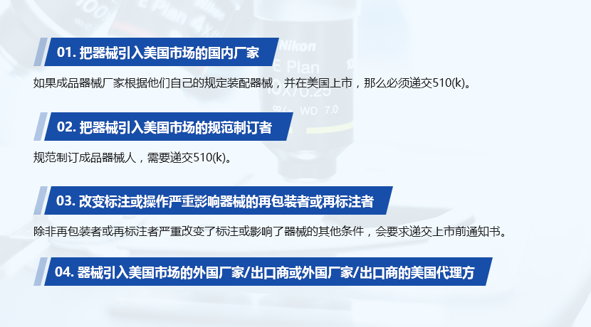 以下四类参与者必须向FDA提交 510(K)
